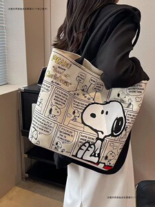 卡通新款史努比帆布包大容量单肩通勤托特帆布包女耐用环保手提袋