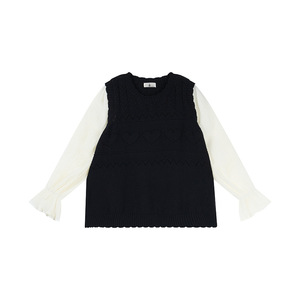 双天2025新款胖mm大码女装秋装雪纺拼接假两件针织衫上衣F587