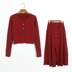 (麻花短开衫裙套装 QTY) 酒红