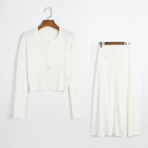 (麻花短开衫裙套装 QTY) 白色