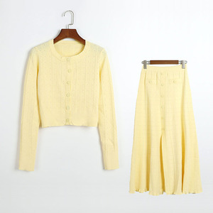 (麻花短开衫裙套装 QTY) 黄色