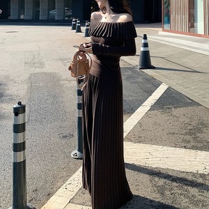 2025秋季一字肩针织套装女荷叶边娃娃领甜美上衣+半身裙法式风