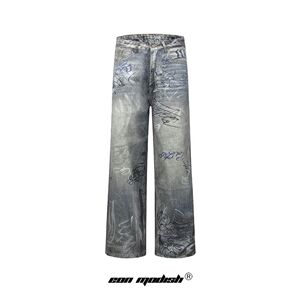 Eon Modish 25秋季New美式街潮百搭洗水印花做旧牛仔长裤