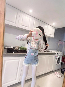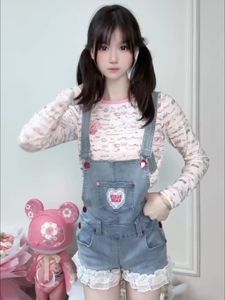 可爱牛仔背带裤女y2k日系俏皮甜美女儿服多巴胺蕾丝拼接连体裤