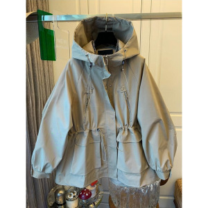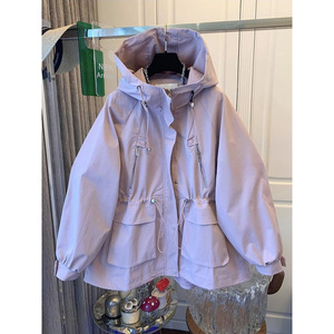 高级感休闲运动拉链连帽工装风衣冲锋衣宽松时尚中长外套2025春秋