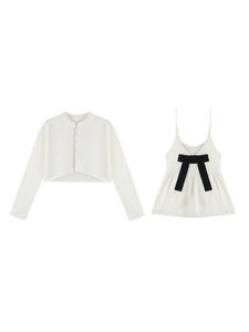 现货 古堡少女'针织开衫外套吊带套装初秋穿搭短上衣外套女秋款