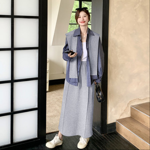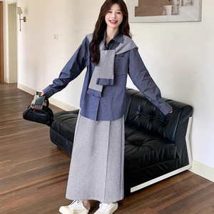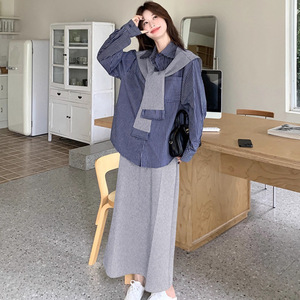 高级穿搭一整套2025新款复古休闲衬衫韩版宽松显瘦半身裙两件套装