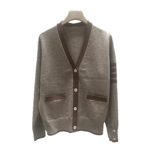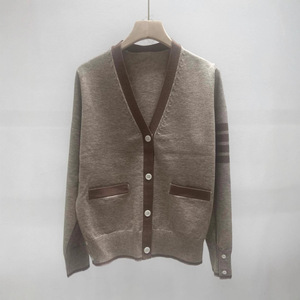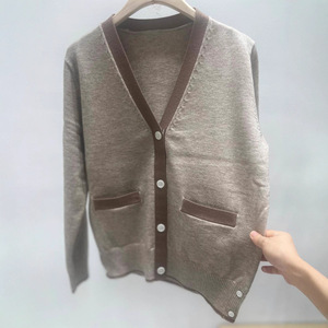 2025年秋季新款撞色四道杠针织长袖单排扣V领开衫宽松百搭女上衣