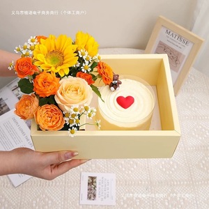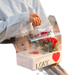 中秋节鲜花礼品一体手提盒礼盒透明花盒花艺插花蛋糕烘焙月饼纸盒