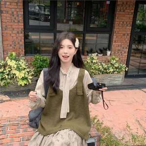 绿背心+杏衬衫【两件套】