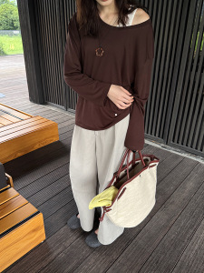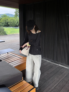 黎诺早秋新款韩系钉珠T恤+背心两件套女2025显瘦针织长袖叠穿上衣