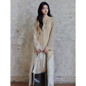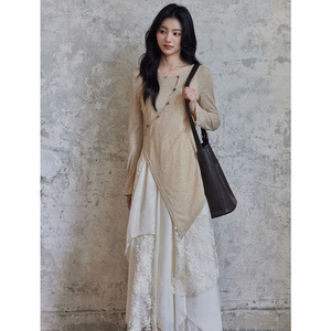 贰羊设计【南梧】新中式禅意不规则针织衫女重工多裁片网纱裙套装