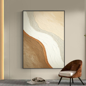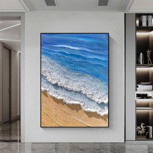 大芬村纯手绘油画立体砂岩画现代简约客厅沙发海浪背景墙玄关抽象