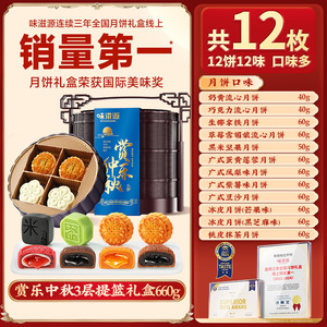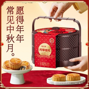 味滋源双层提篮广式月饼礼盒冰皮豆沙老式五仁中秋送长辈批发