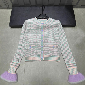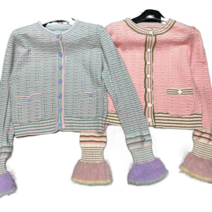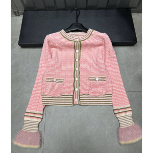 25年秋季新款香家logo纽扣毛毛袖针织长袖单排扣开衫宽松百搭毛衣