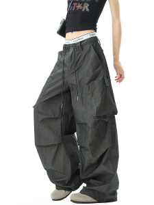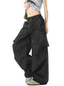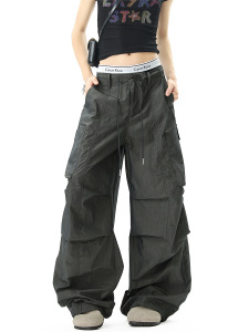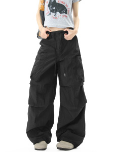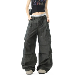 美式高街阔腿伞兵工装休闲裤女2025年夏季新款宽松速干运动冲锋裤