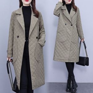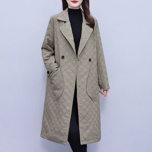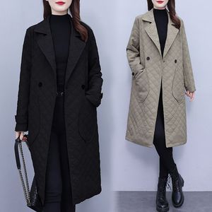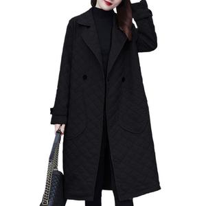 潮流中长款菱格风衣女春秋款2025大码显瘦百搭过膝网红西装领外套