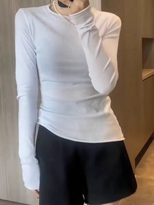 甜美减龄纯色圆领长袖打底衫T恤女秋冬新款时尚百搭修身显瘦上衣