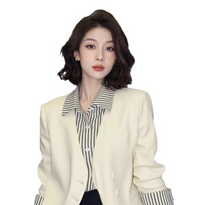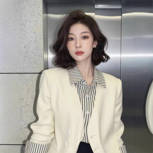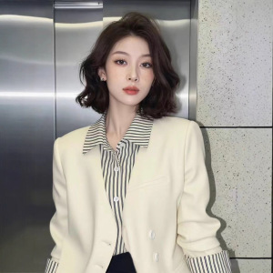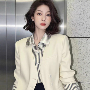 白色假两件条纹西装外套女2025新款秋气质高端独特超好看职业上衣
