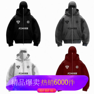 跨境 潮牌加绒双帽独特设计连帽卫衣秋冬新款男女同款宽松Y2K卫衣