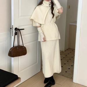 秋冬款设计感复古慵懒风仿浣熊绒软糯毛衣针织衫配袖套半身裙套装