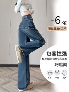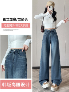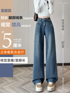 复古蓝窄版阔腿裤女2025年秋季新款高腰宽松遮肉垂感拖地直筒裤子