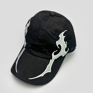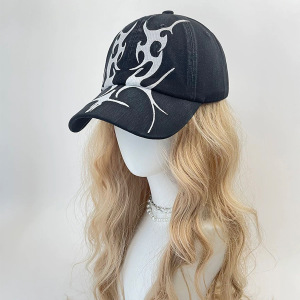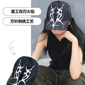 小众复古火焰刺绣字母棒球帽男女遮阳美式街头个性鸭舌帽子批发