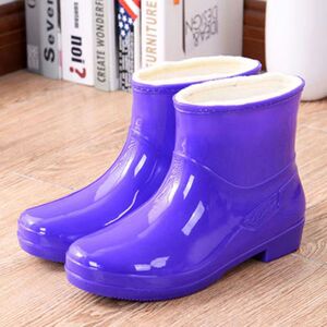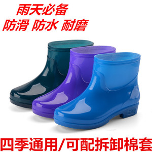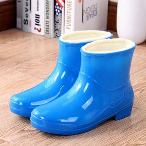 水鞋女固定绒筒雨鞋牛筋底防水防滑防臭厨房工作胶鞋加绒冬
