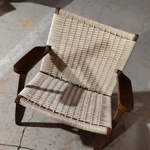 绳编实木单人沙发椅北欧阳台休闲椅子日式侘寂风小户型靠背懒人椅