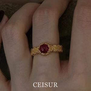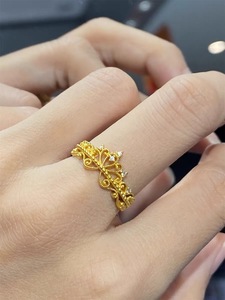 中古vintage宫廷风金色贝母浮雕戒指轻奢复古高级感开口设计指环