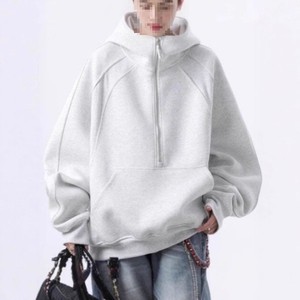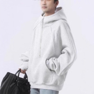 美式重磅硬挺卫衣男款潮牌简约时尚半拉链外套解构设计感连帽上衣