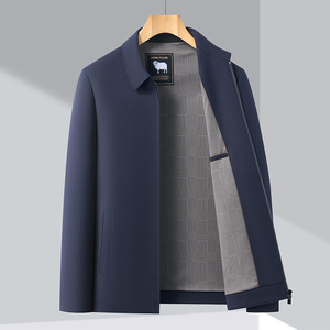 春秋季中老年羊毛夹克男商务休闲毛料男装外套中年爸爸装翻领上衣
