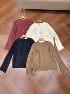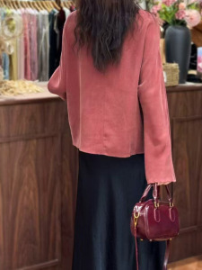 高级感气质轻奢圆领衬衫女秋季宽松复古时尚简约铜氨丝上衣
