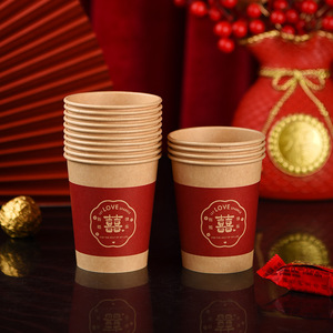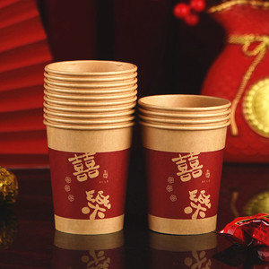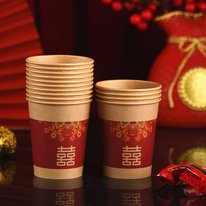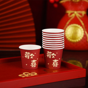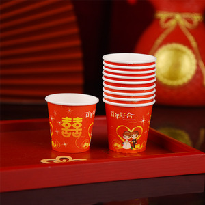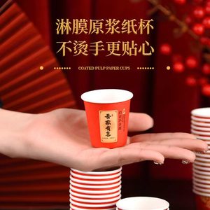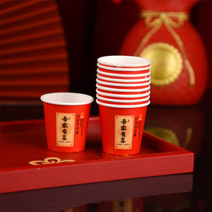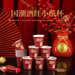 茶杯喜庆小加厚结婚酒杯小号小一次性杯纸杯敬茶红色婚礼敬酒红任