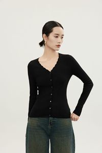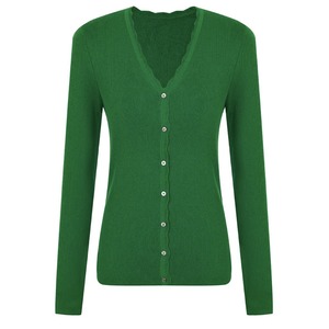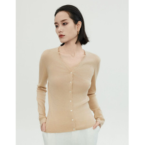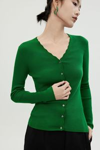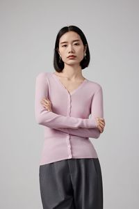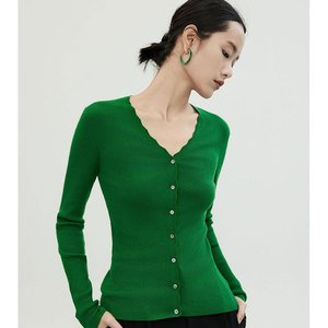德国扬子纱100羊毛V领单排贝壳扣长袖开衫气质优雅修身百搭针织衫