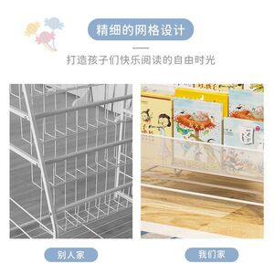 儿童书架家用落地简易收纳架宝宝绘本架免安装铁艺阅读置物架书柜