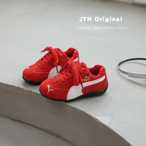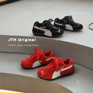 2025秋季新款儿童休闲阿甘鞋中大童女童红色德训鞋软底学生单鞋潮