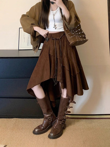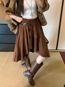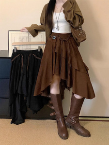 十三行2025秋装新款美拉德风不规则半身裙女复古高腰显瘦a字长裙