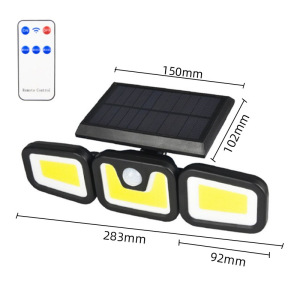 跨境太阳能灯三头可旋转壁灯户外太阳能感应灯墙壁灯庭院照明路灯