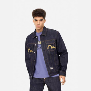外贸齐标EV25年春秋牛仔外套男女款福神M刺绣潮牌百搭牛仔上衣代F
