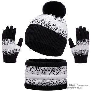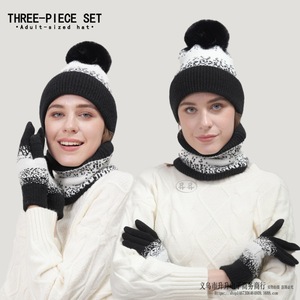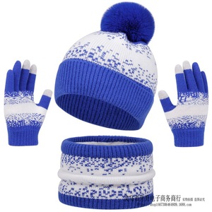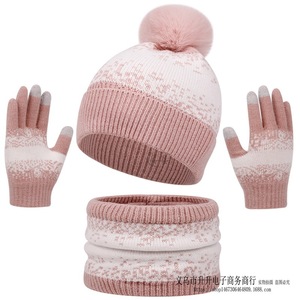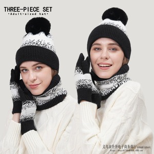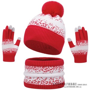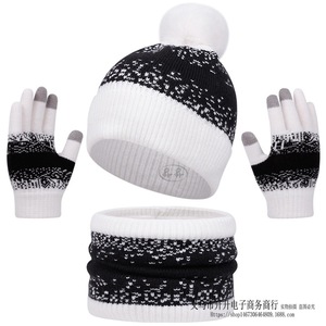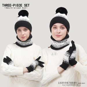 冬季新款加绒护耳针织帽子围脖触屏手套保暖套装男户外御寒毛线帽