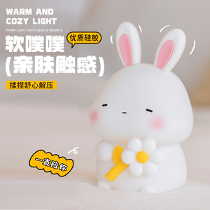 兔子硅胶拍拍灯婴儿喂奶床头伴睡氛围灯卧室卡通小夜灯儿童礼物灯