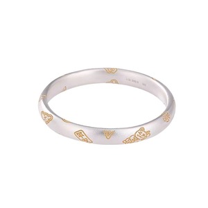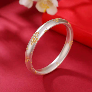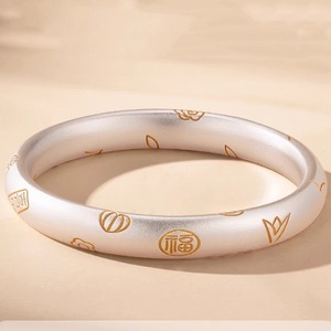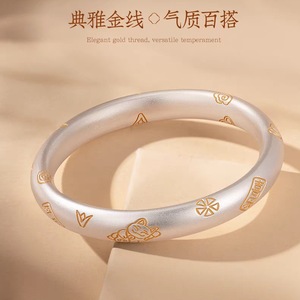 银美白铜吉言招财猫古法手镯女祥云空心闭口平安福金线度银手镯