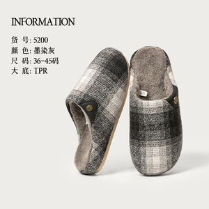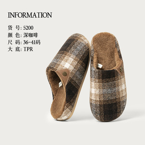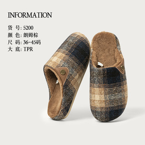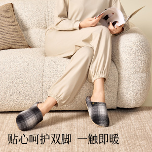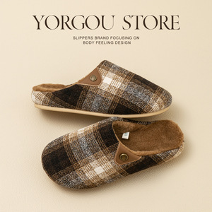 远港经典格子棉拖鞋女士2025新款冬季家居室内加绒保暖毛绒秋天男