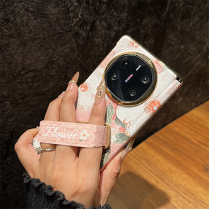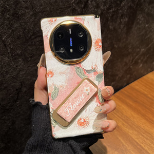 艺术油画山茶花适用华为matex6折叠屏手机壳matex5旋转腕带支架X6