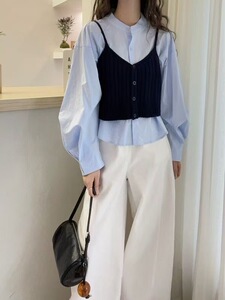 爆款秋季韩系针织短款吊带背心女+洋气减龄宽松长袖衬衫两件套装