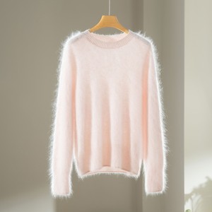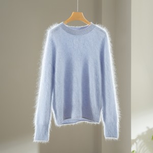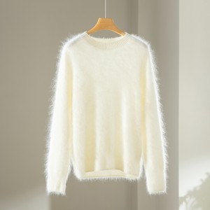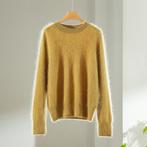 拉绒系列~25年新款100%山羊绒圆领纯色套头衫拉毛百搭毛衣女上衣