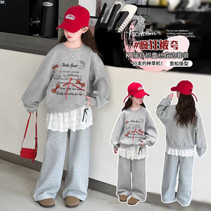 女童套装2025春季新款中大童韩版洋气华棉卫衣卫裤套装儿童时尚