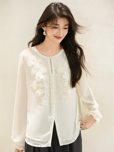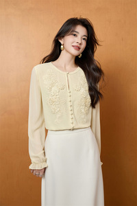 2025年新款立体刺绣上衣圆领长袖开衫涤纶减龄上衣