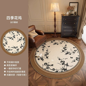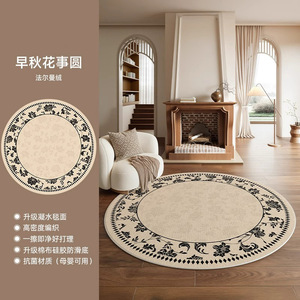 圆形地毯客厅高级感法式中古风新款卧室床边毯衣帽间化妆间地垫